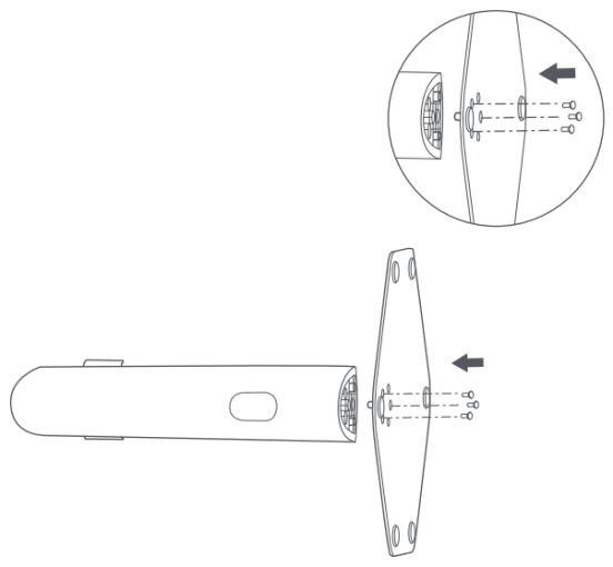 2. 拆下支架和底座,將支架依箭頭方向插入定位柱和定位孔,並鎖緊螺絲。
