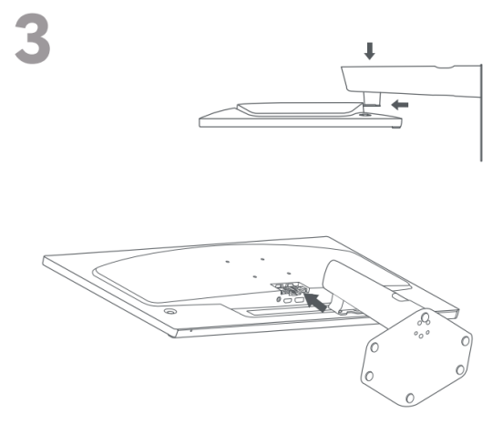 3. 將立柱前端的金屬軸放入控制台背面的插槽中。沿箭頭方向推動立柱,直到聽到「咔噠」聲。