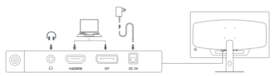 (2). 將HDMI訊號線一端連接到電腦的HDMI 2.0接口,另一端連接到螢幕的HDMI接口。