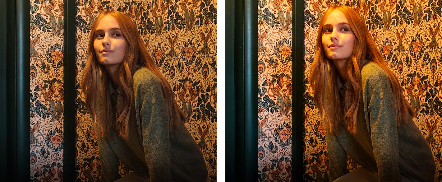 Portraits come out ultra clear, capturing fine skin textures, hair, and eyebrow details while keeping the subject natural and lifelike.