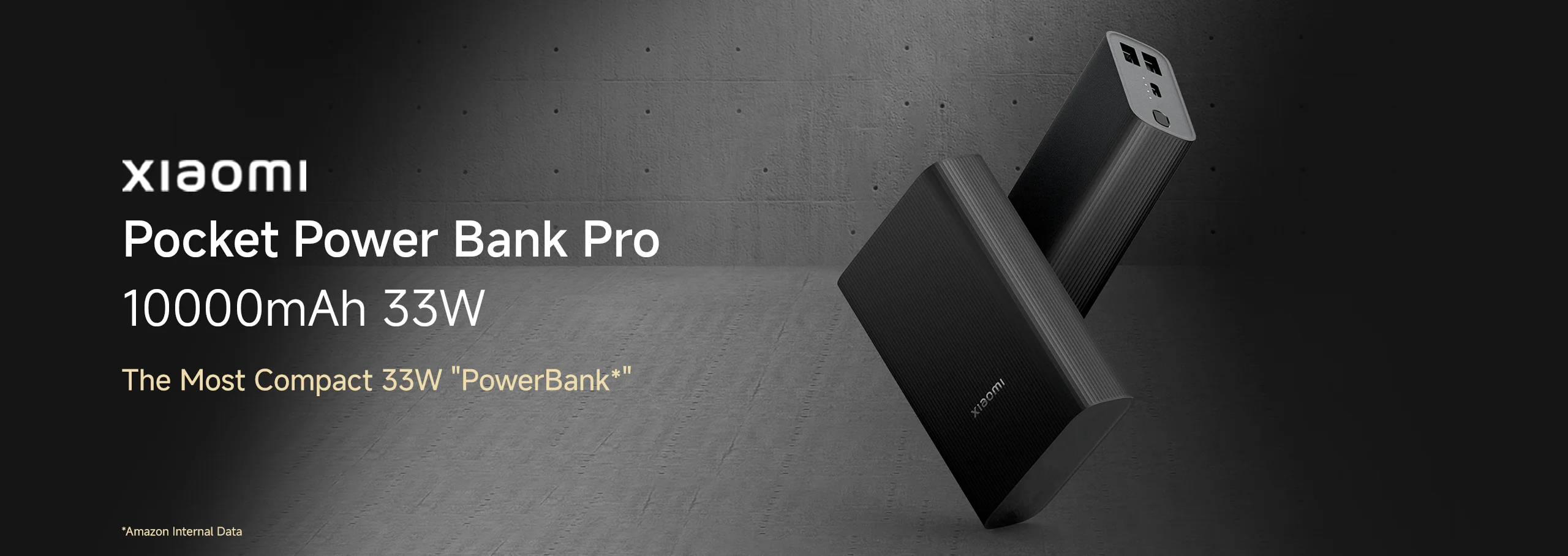 The Xiaomi Pocket Power Bank Pro 10000mAh 33W being the most compact 33W power bank gives you on the go battery back with a style to carry around in your smallest pockets.