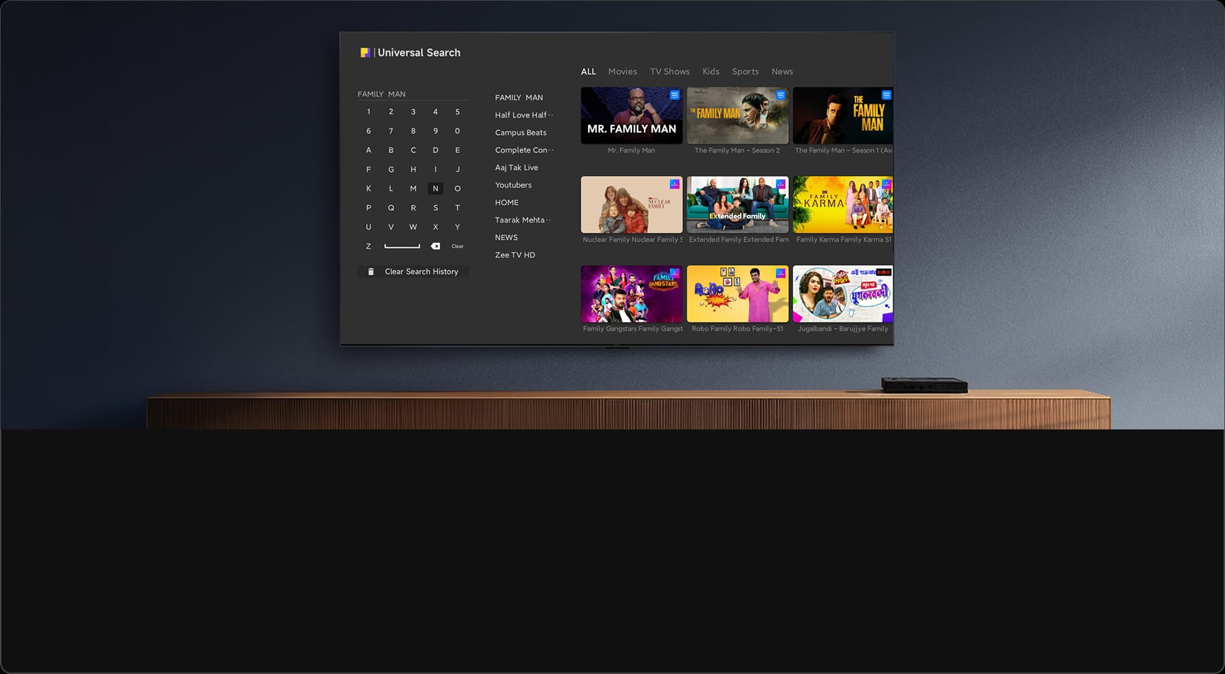 Universal searchSearch across any movie or TV Show across any language. This is a single place to find content across 30+ different content partners available in India. Users can easily type a specific content title and PatchWall will help you navigate to the title easily.