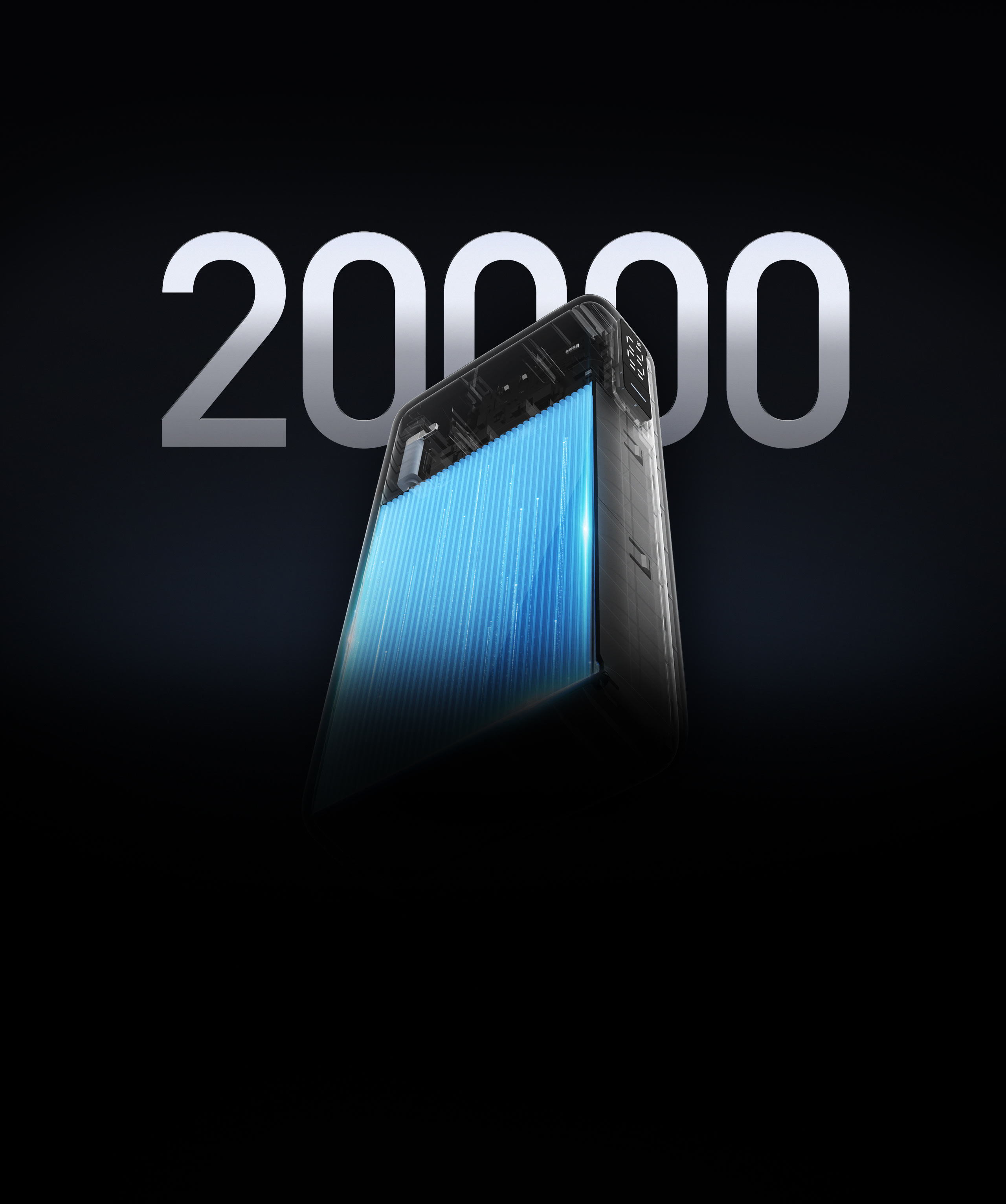 *Capacità della batteria equivalente a 20.000 mAh: Il power bank è dotato di tre celle da 6.700 mAh con tensione nominale di 3,87 V, equivalente all'incirca all'energia di una singola batteria con una tensione nominale di 3,87 V e una capacità nominale di 20.000 mAh.