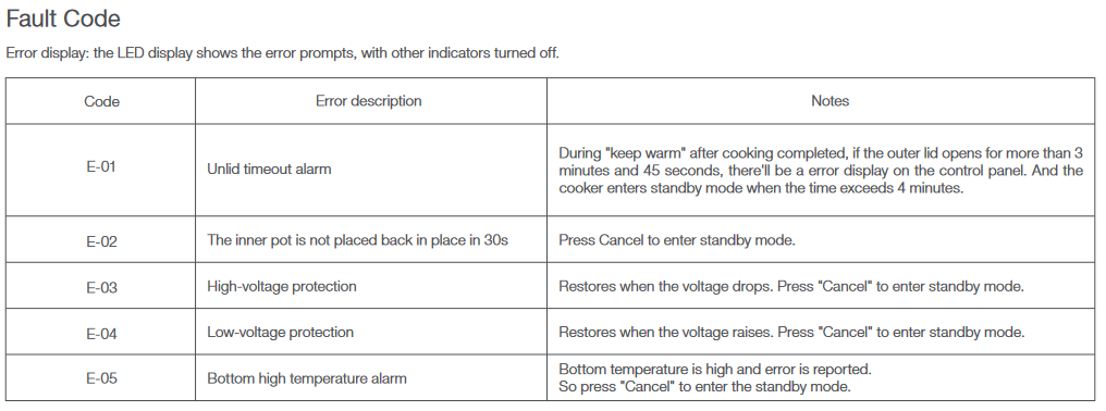 5. In caso di errore o problema, il pannello del display può mostrare un codice o un messaggio di errore, avvisando gli utenti di intraprendere le azioni appropriate;