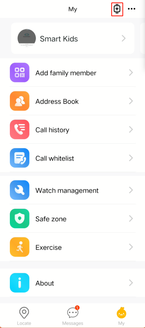 3. Apri l'app Xiaomi Kids → Il mio → Aggiungi un dispositivo (se hai già associato l'orologio, Il mio → Aggiungi un dispositivo nell'angolo in alto a destra) → scansiona il codice QR sull'orologio per associarlo.
