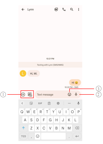 | 1. Aggiungi allegato | 2. Tocca e tieni premuto il messaggio vocale del cavo | 3. Aggiungi emoji |