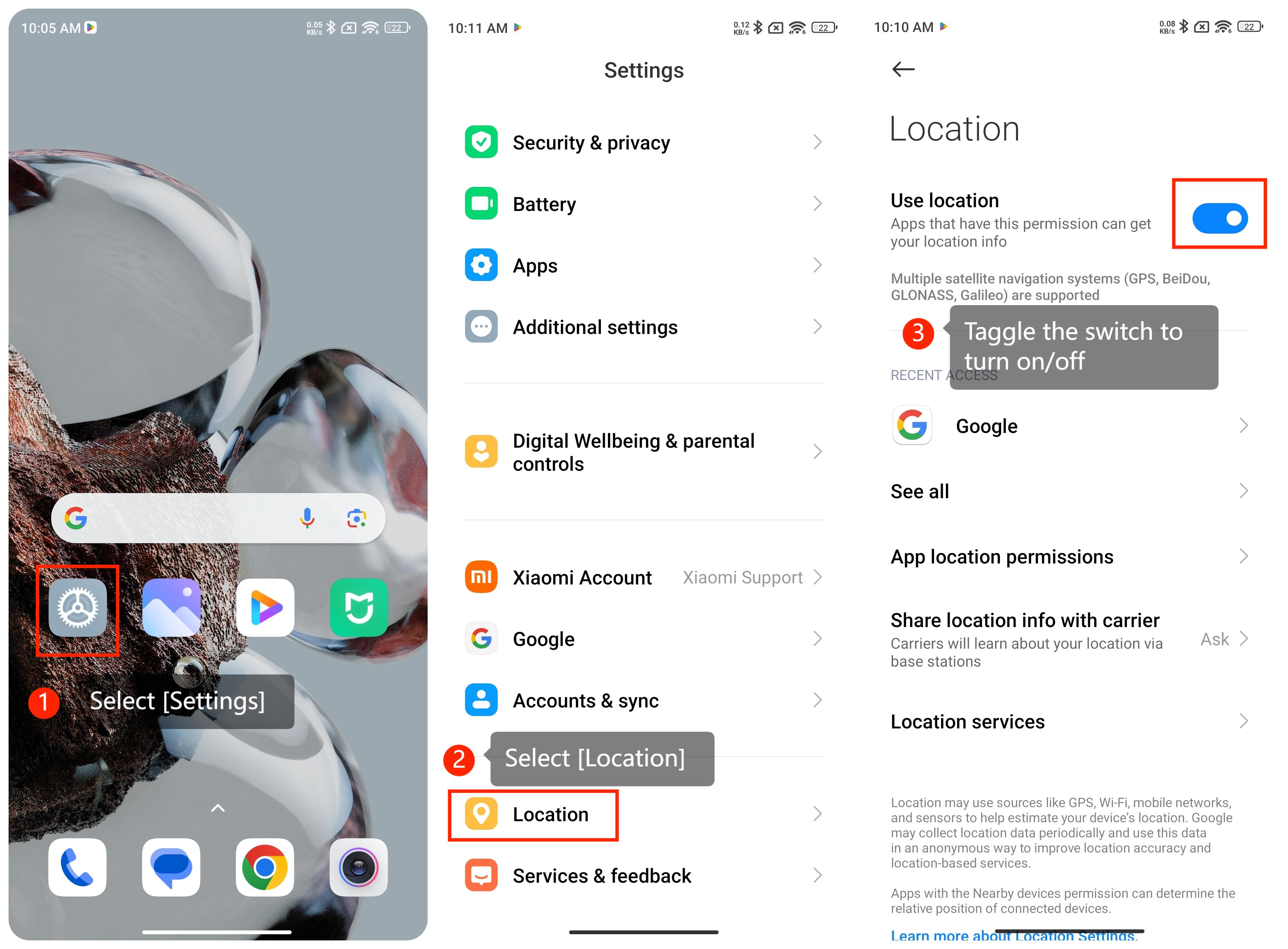 (1). Apri le [Impostazioni] sul telefono, scorri verso il basso e seleziona [Posizione];
