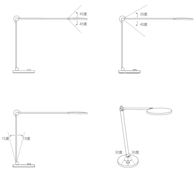 10. D: Qual è l'angolo del corpo della lampada che può essere regolato? R: Come mostrato nell'immagine qui sotto: 11. D: Come far funzionare Mi Smart LED Desk Lamp Pro tramite Apple HomeKit? R: L'operazione specifica è la seguente: Aprire HomeKit nel proprio iPhone o iPad; Cliccare su “Aggiungi dispositivo” e seguire le istruzioni, scansionare il codice QR sulla base della lampada da scrivania, inserire il codice di impostazione a 8 bit sopra il codice QR per completare l'accesso all'app Apple Home.