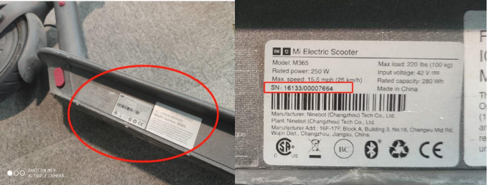 Si prega di controllare il numero di serie dalla parte inferiore laterale di MiScooter (Vedere l'immagine qui sotto)
