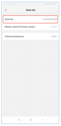 leggere il numero di serie e accendere MiScooter; Fai click su Cerca veicolo → Schermata principale→ Impostazioni (icona in alto a destra) → Informazioni di base, quindi puoi visualizzare il numero di serie.