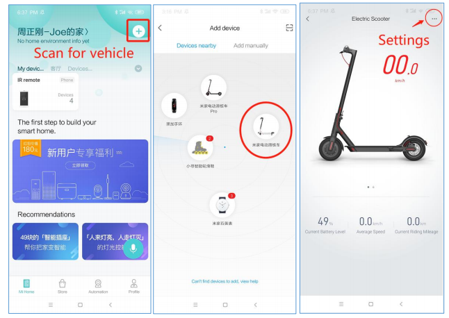 e accendi MiScooter, fai clic su <g id="171">Cerca veicolo → Aggiungi dispositivo da vicino e fai clic sull'icona MiScooter → entra nella schermata principale e quindi fai clic su Impostazioni (icona in alto a destra) → Informazioni di base → Numero di serie del veicolo.