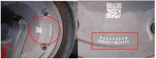 Se non riesci ad accendere il veicolo e hai perso l'etichetta per SN, puoi fornire il numero di serie della ruota anteriore e inviarlo al servizio Xiaomi, quindi possiamo cercare l'SN del veicolo dal database tramite SN della ruota anteriore, come SN: 3QB9817IMC0370 (Vedere l'immagine qui sotto)