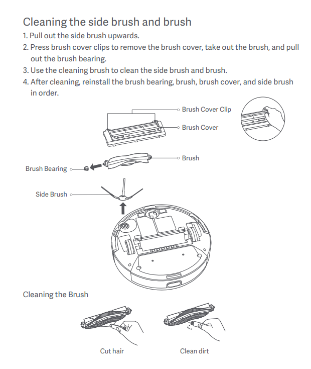A: 1. Si prega di provare a rimuovere la spazzola laterale e confermare se ci sono oggetti estranei o capelli impigliati nella spazzola laterale e nei suoi componenti;