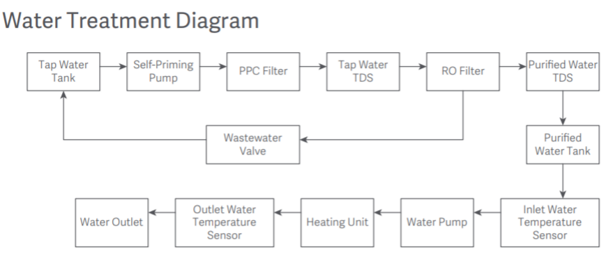 R: Il flusso di processo dell'acqua di Xiaomi Smart Filtered Water Dispenser Pro è il seguente: