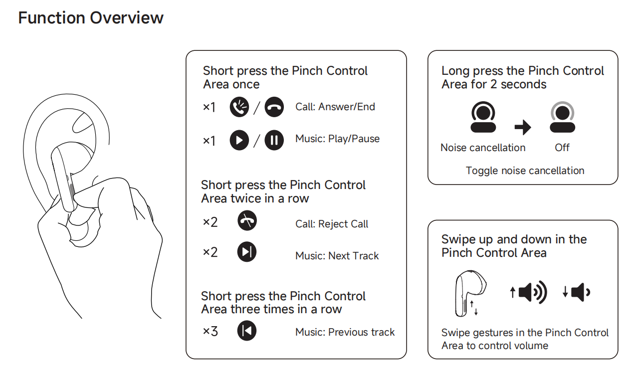 4. Tenere premuta l'area di controllo delle pizzicature per 2 secondi: Attiva/disattiva la cancellazione del rumore;