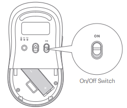 Di seguito sono elencati i passaggi per la connessione tramite il canale a 2,4 GHz: 1. Far scorrere verso il basso il coperchio del vano batterie per rimuoverlo come illustrato; 2. Estrarre il dongle e collegarlo a una porta USB del computer; 3. Installare la batteria AA nel vano batteria del mousee accendere il mouse; 4. Quando il mouse viene acceso per la prima volta, per impostazione predefinita viene utilizzato il canale a 2,4 GHz (il mouse è stato accoppiato con il dongle prima di lasciare la fabbrica). L'indicatore del canale a 2,4 GHz rimane acceso per 3 secondi e poi si spegne dopo che il mouse si è collegato correttamente al computer; 5. Quando sul computer viene visualizzato un pop-up che avvisa che il mouse è pronto per l'uso, è possibile chiudere ilcoperchio del vano batteria e iniziare a utilizzare il mouse. Nota: Premere il pulsante Funzione per scorrere i canali di 2.4 GHz, Bluetooth 1 e Bluetooth 2.
