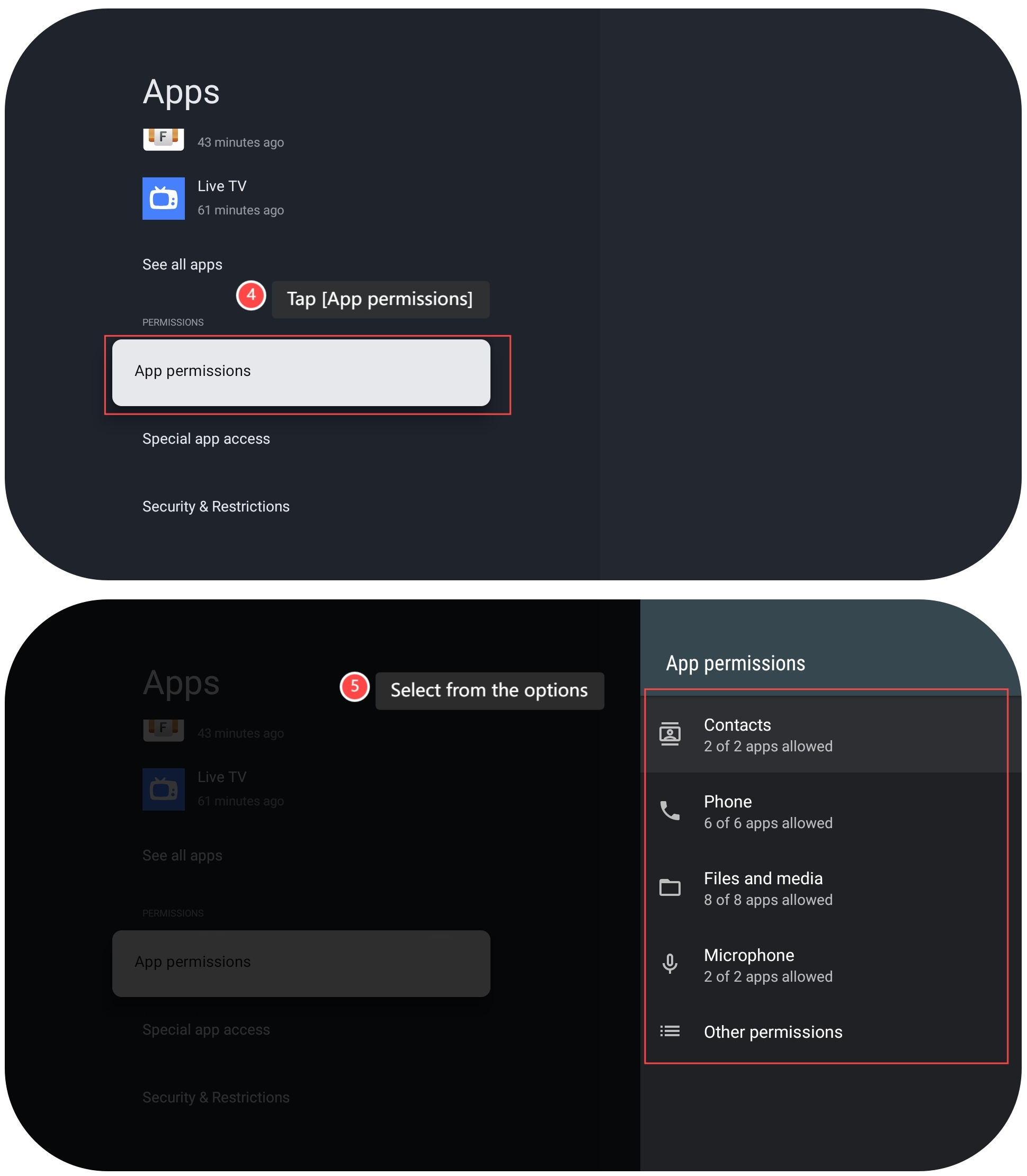 5. Selezionare tra le opzioni per gestire le autorizzazioni dell'APP.