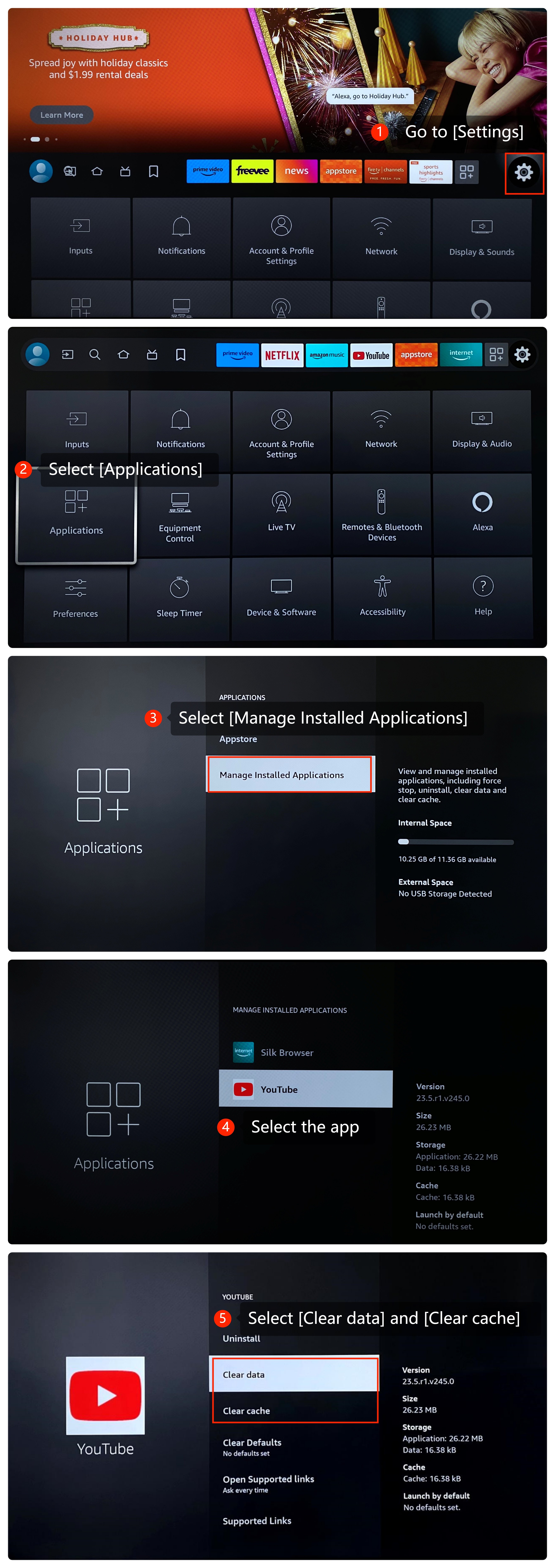 4. Troppa cache causerà l'arresto anomalo dell'app, vai su [Impostazioni] >> seleziona [Applicazioni] >> seleziona [Gestisci applicazioni installate] >> seleziona l'app >> seleziona [Cancella data] e [Cancella dolore] e quindi prova ad aprire nuovamente l'app;