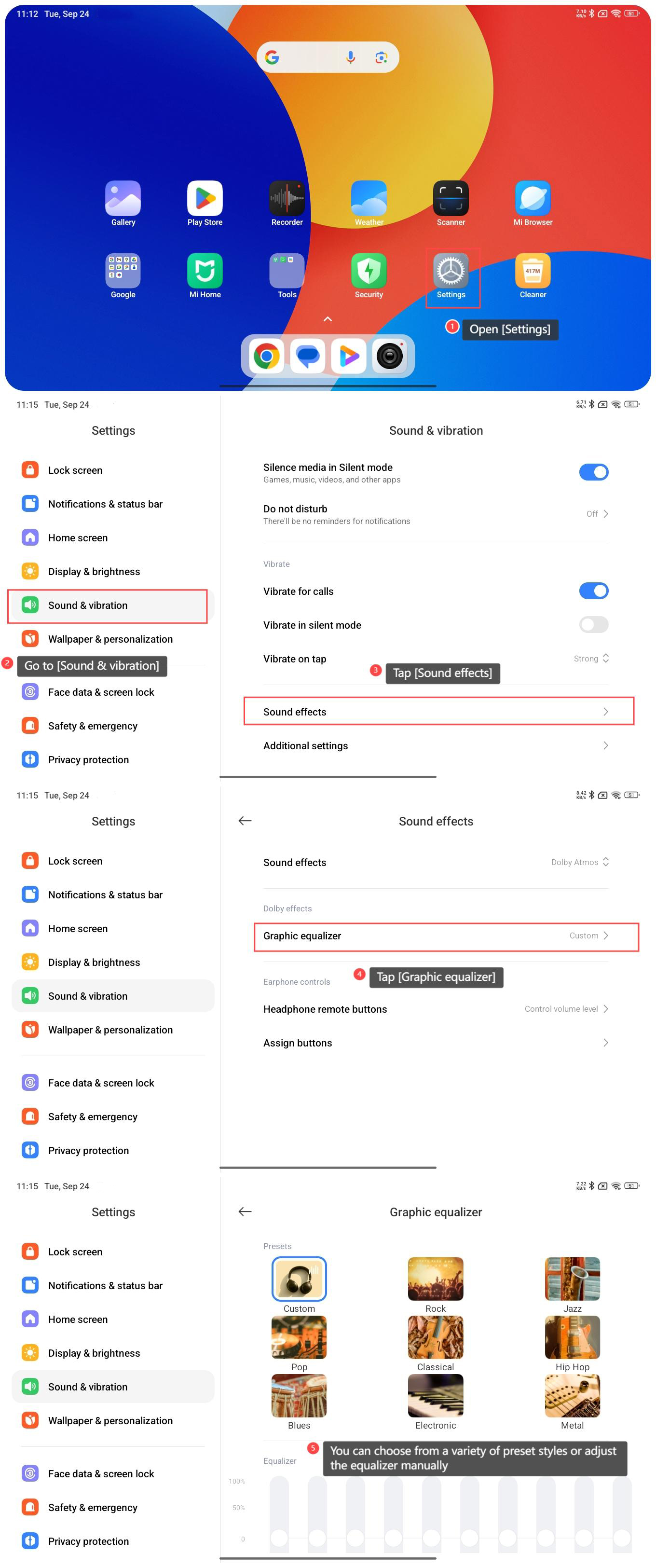 Per impostare l'equalizzatore grafico sul Redmi Pad SE 8.7 4G, fare riferimento ai seguenti passaggi: