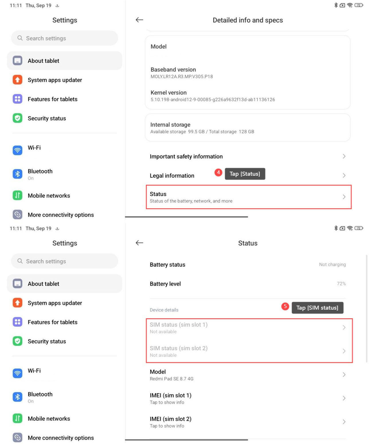 5. Toccare [Stato SIM] per controllare lo stato della SIM del tablet.