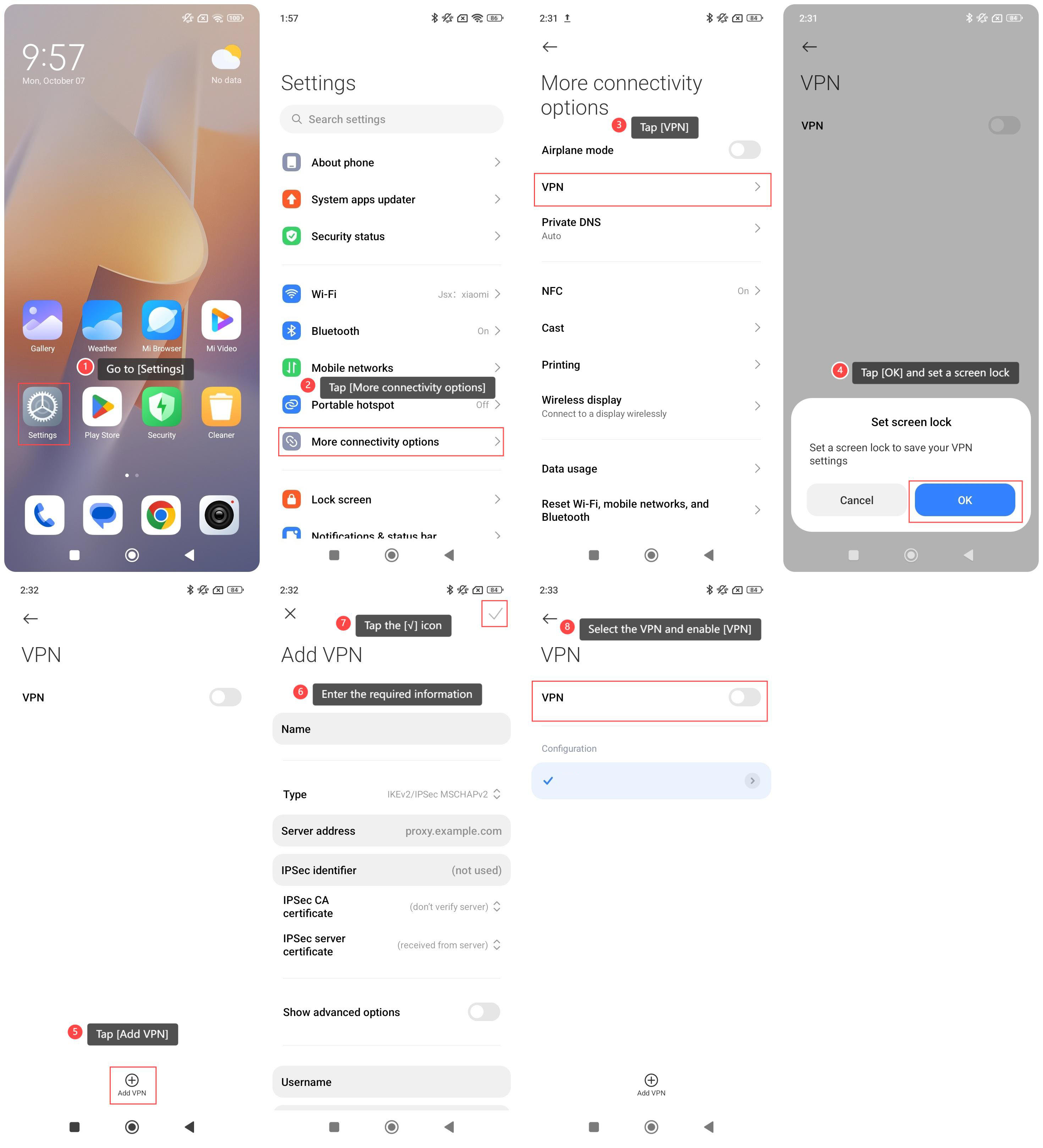 La configurazione di una VPN sul Redmi 13C aiuta a proteggere la tua privacy online crittografando la tua connessione Internet, proteggendo i dati sensibili e consentendo l'accesso a contenuti limitati per regione. Ciò migliora sia la sicurezza che la flessibilità durante la navigazione in Internet.