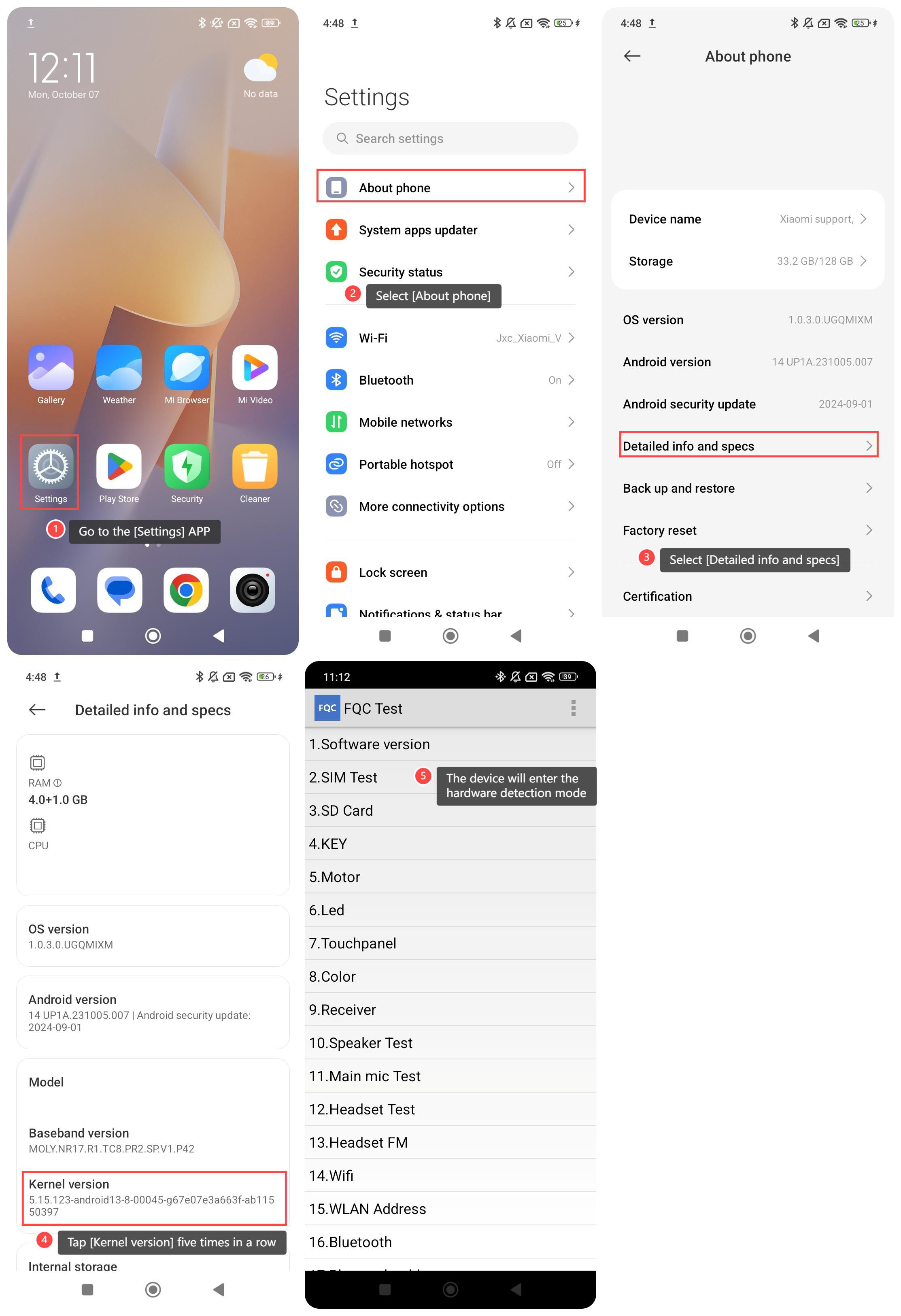 4. Tocca [Versione kernel] cinque volte di seguito;
