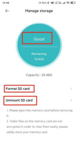 3.Se la scheda di memoria non registra video o non esegue automaticamente l'eliminazione dei file, la scheda di memoria può essere formattata nelle impostazioni di archiviazione del plug-in dell'app della fotocamera.