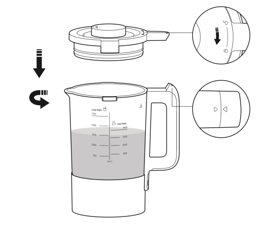 2. Per le bevande fredde: il livello superiore dell'acqua è di 1,75 litri e il livello inferiore dell'acqua è di 0,75 litri.