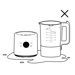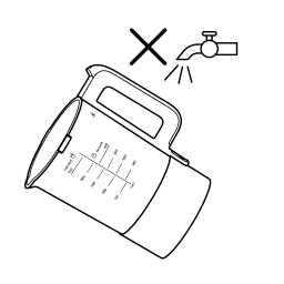 | Prima della pulizia, scollegare il cavo di alimentazione. | Le lame per frullare sono molto affilate, quindi non toccarle direttamente con le mani. | Non sciacquare la parete esterna e il fondo del barattolo per frullare con acqua. | Non immergere l'unità principale e il fondo del barattolo per frullare. |