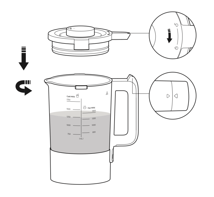 2. Per le bevande fredde: il livello superiore dell'acqua è di 1,75 litri e il livello inferiore dell'acqua è di 0,75 litri.