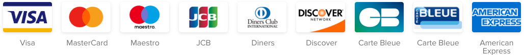Accettiamo pagamenti completi tramite le seguenti carte di credito o debito: