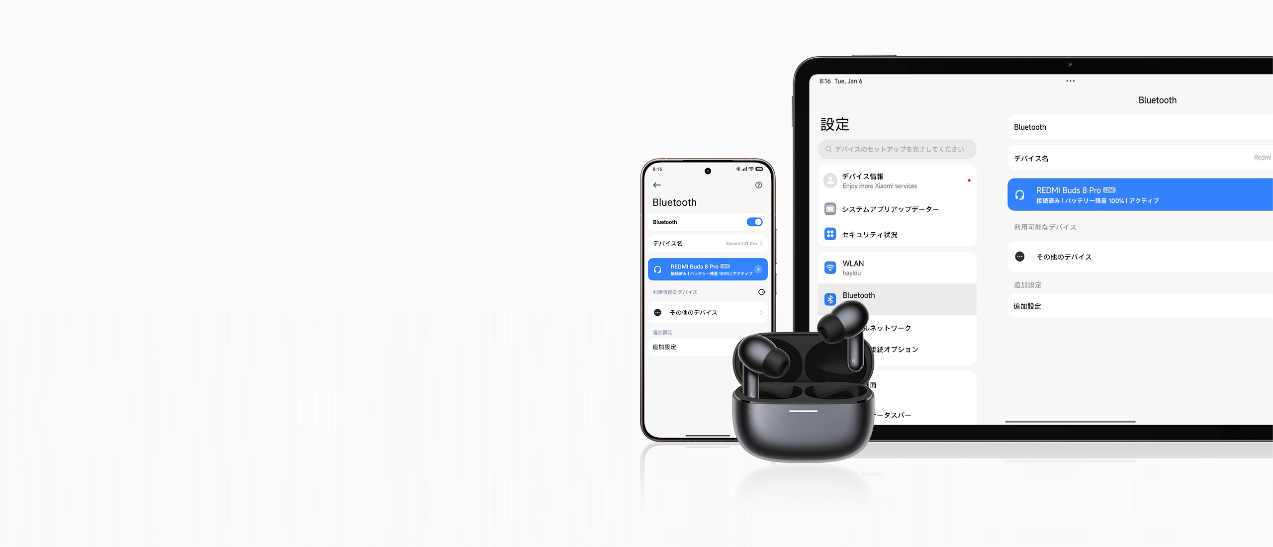 REDMI Buds 8 Proは2台のデバイスに同時接続できるため、切り替えの手間なくスムーズにマルチタスクをこなせます。8