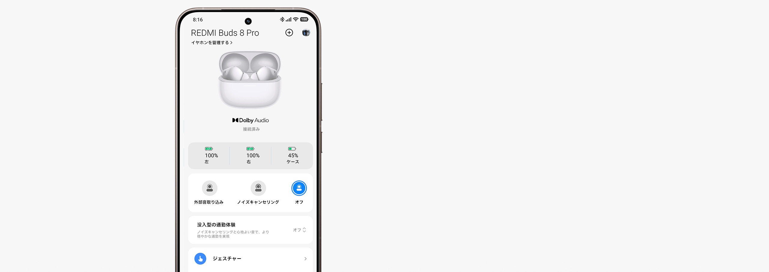 新世代のアコースティックアーキテクチャにより、REDMI Buds 8 Proは、より豊かなディテールと俊敏なサウンドレスポンスを実現します。