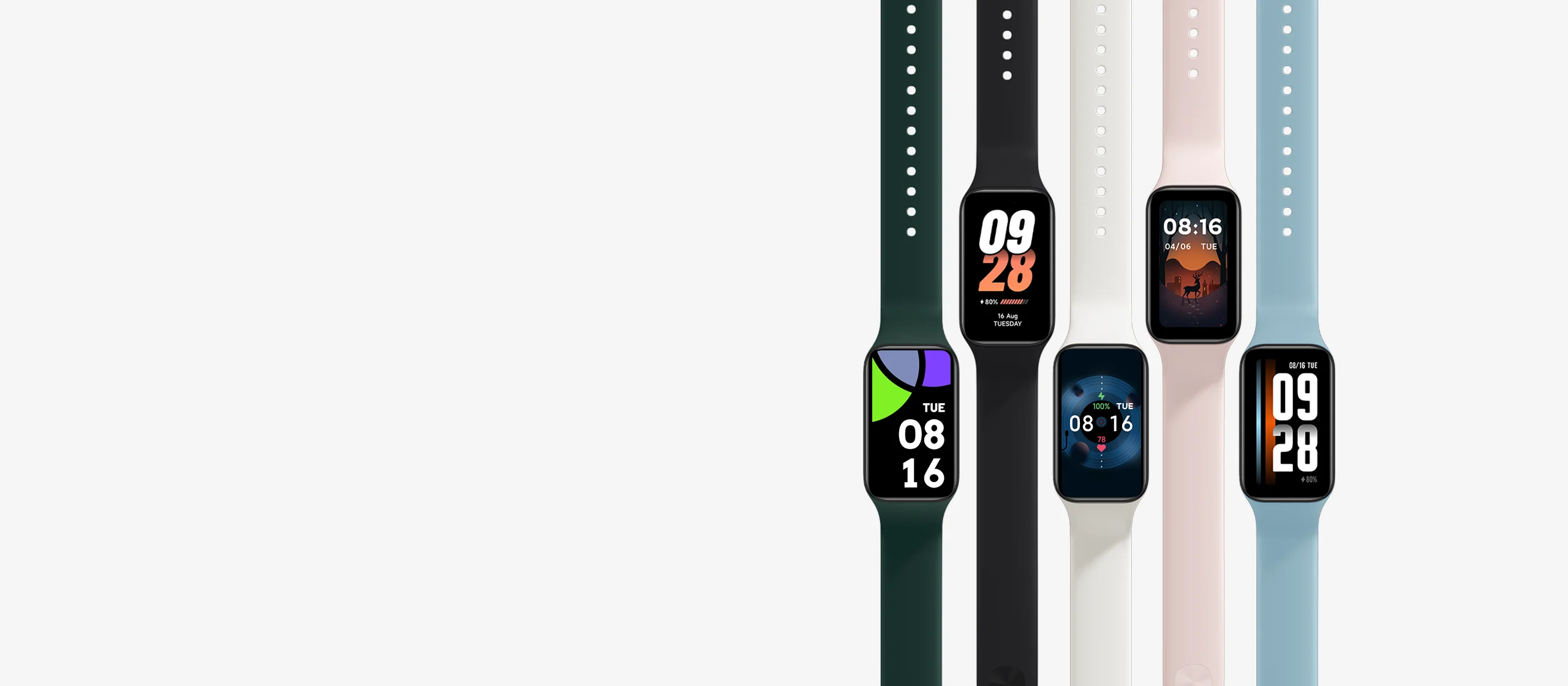 *Xiaomi Smart Band 8 Activeにはブラックまたはピンクのストラップが付属しています。 アイボリー、ブルー、オリーブのストラップは別売りです。