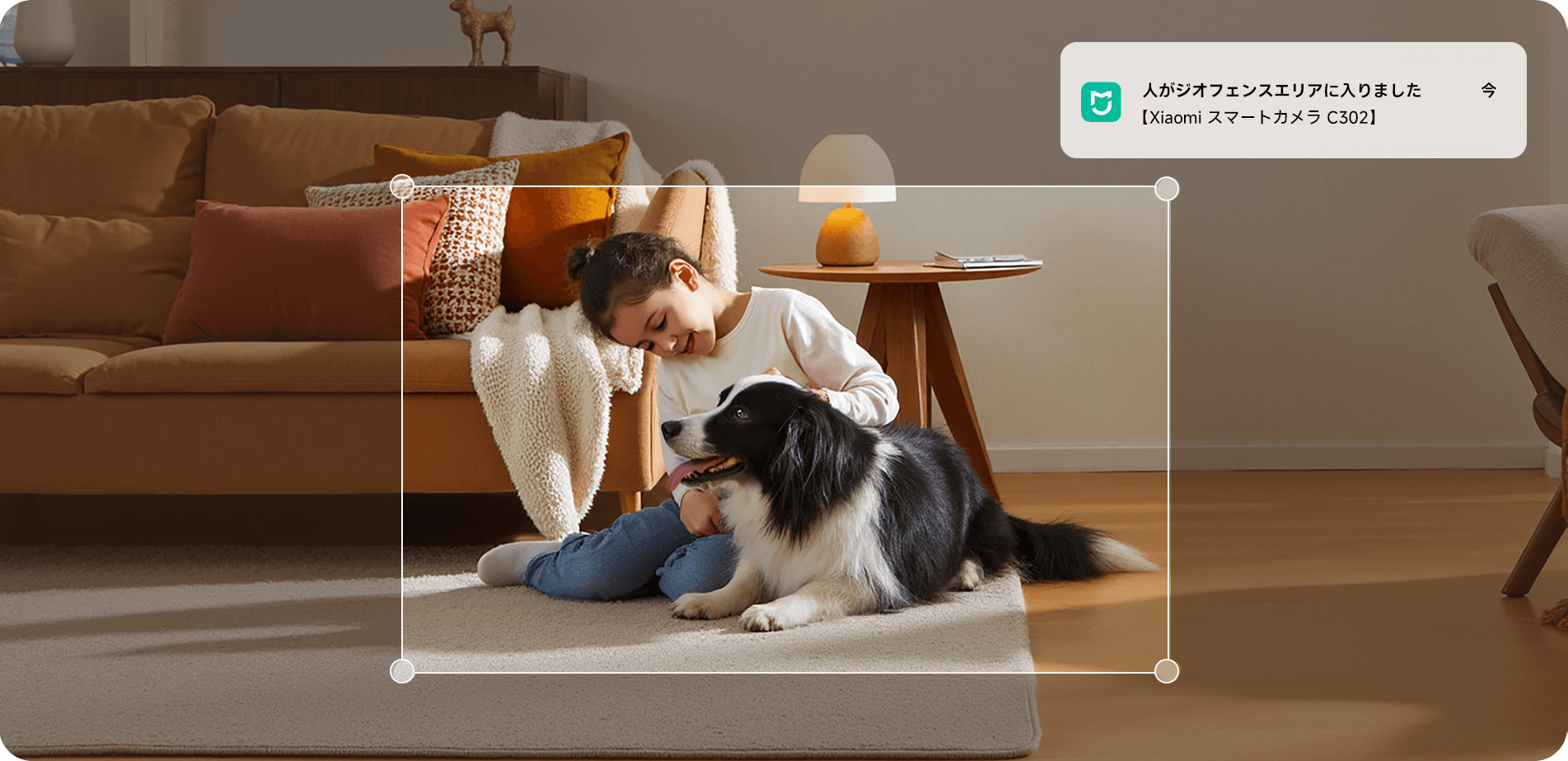 自宅にいるペットの行動を追跡して記録します。ペット検出時にはスマートフォンに通知を送信。
