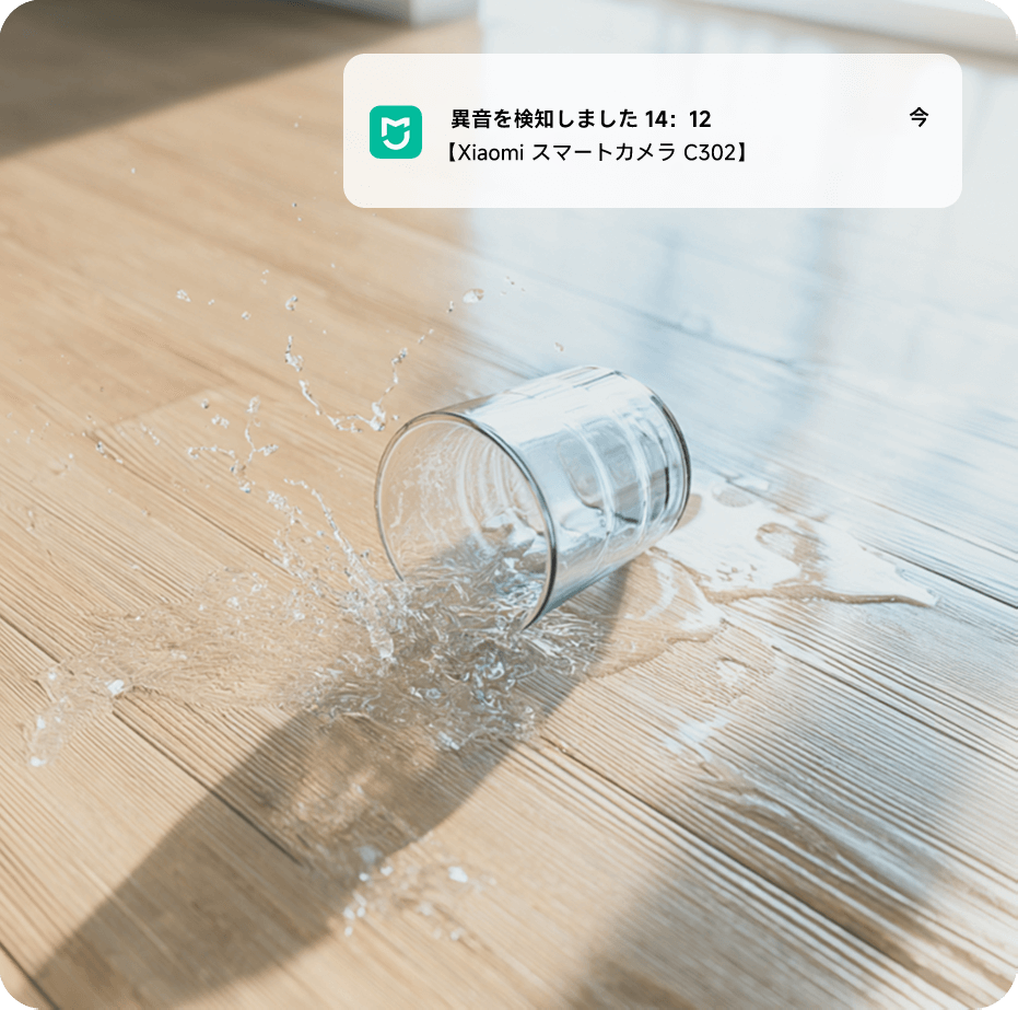 ガラスの破損音など、異常な音を検出した場合に即座に通知。
