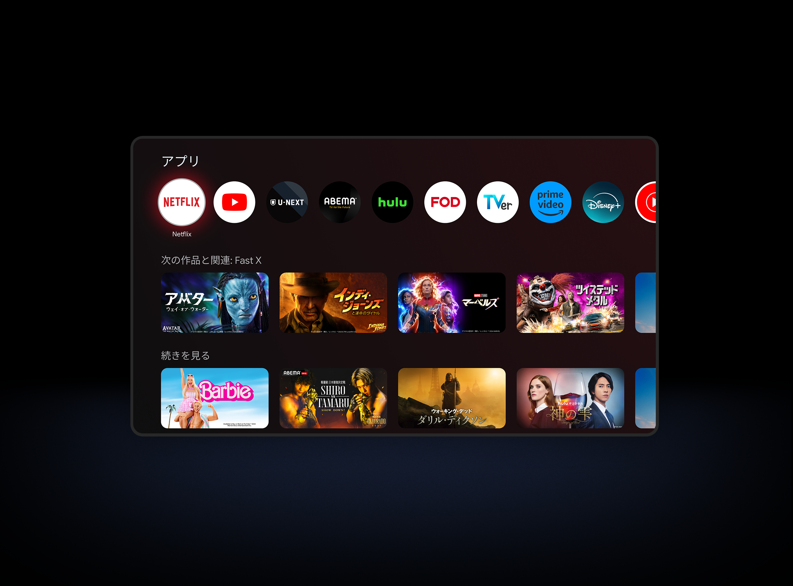 Google TV™は、アプリやサブスクリプションから映画や番組などのコンテンツをまとめて整理し、あなたに合わせて表示してくれます。新しいコンテンツを探すときも、キュレーションされたおすすめをチェックしたり、Googleの強力な検索機能を使って10,000以上のアプリや数百の無料チャンネルから横断的に検索したりできます。パーソナライズされたプロフィールにより、家族それぞれが自分にぴったりの視聴体験を楽しめます。