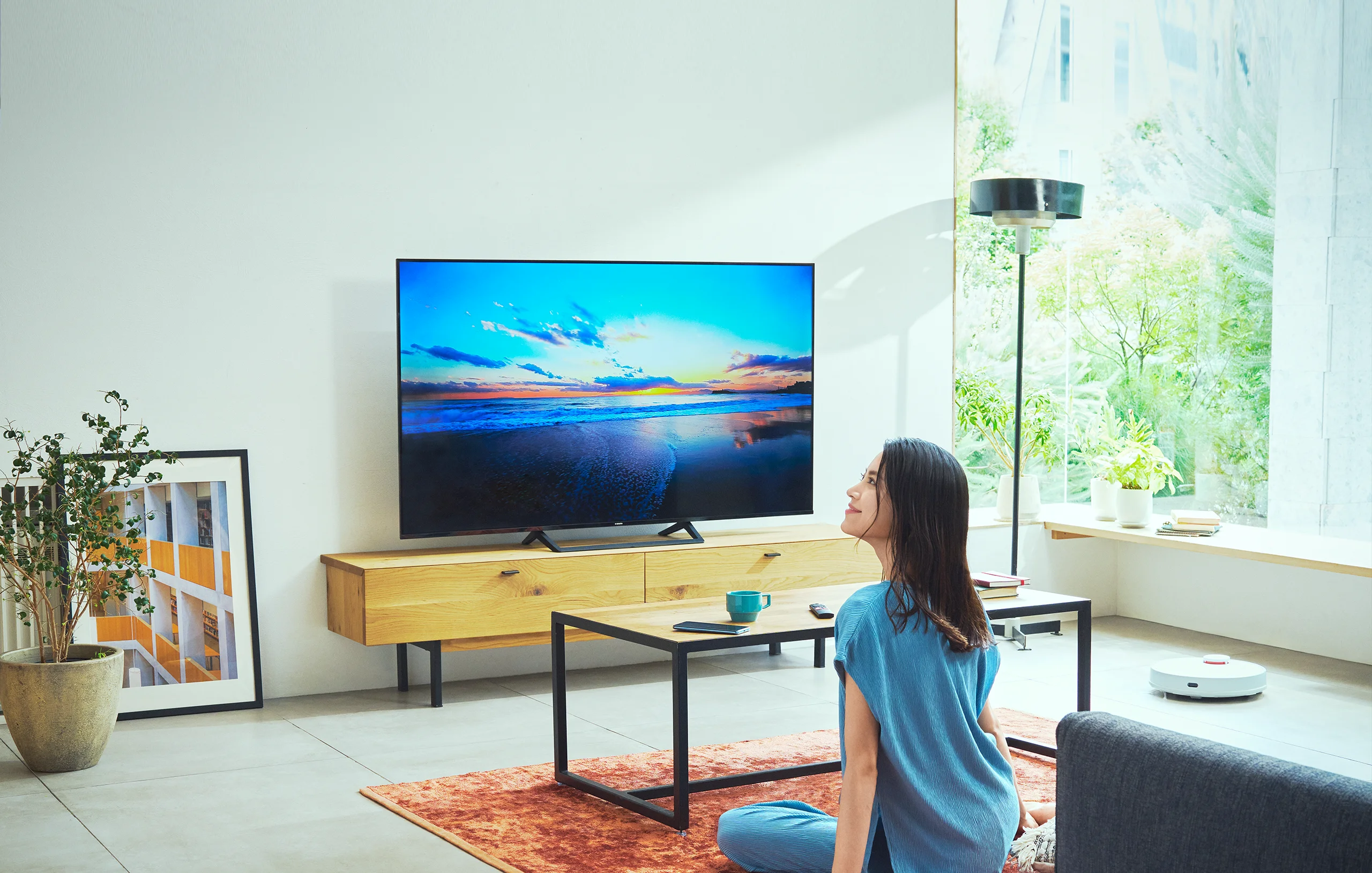 ベゼルレス(狭額縁)デザインにより、標準タイプのテレビよりもはるかに高い画面占有率を実現。ディスプレイの