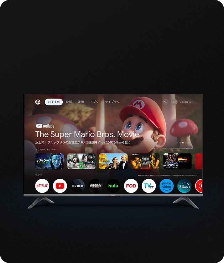 テレビがこれまで以上に頼れる存在に。Google アシスタントに話しかけるだけで、映画の検索、アプリのストリーミング、音楽の再生、テレビの操作まで、すべて音声で行えます。さらに、質問への回答やスマートホーム機器の操作も可能です。リモコンのGoogle アシスタントボタンを押すだけで、すぐに使い始められます。*