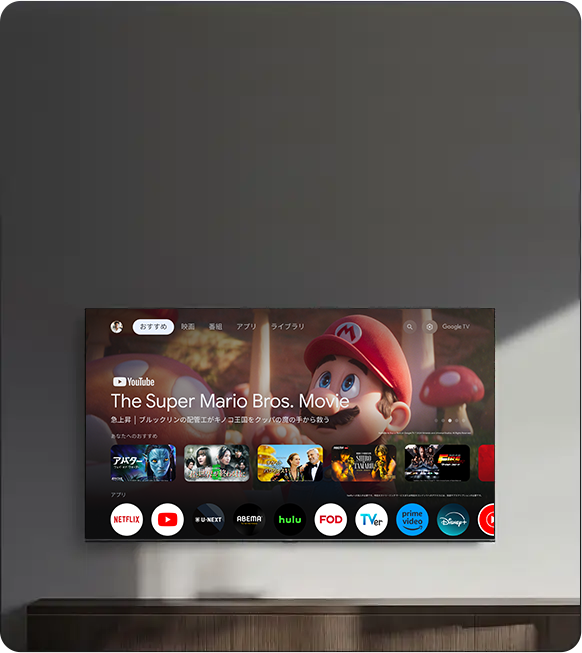 Google TV™は、アプリやサブスクリプションから映画や番組などを集め、あなたのために整理します。新しい作品をお探しですか?厳選されたおすすめを入手したり、Googleの強力な検索エンジンを使って10,000以上のアプリや数百の無料チャンネルを横断検索できます。パーソナライズされたプロフィールで、家族それぞれにぴったりの体験を提供します。4、14