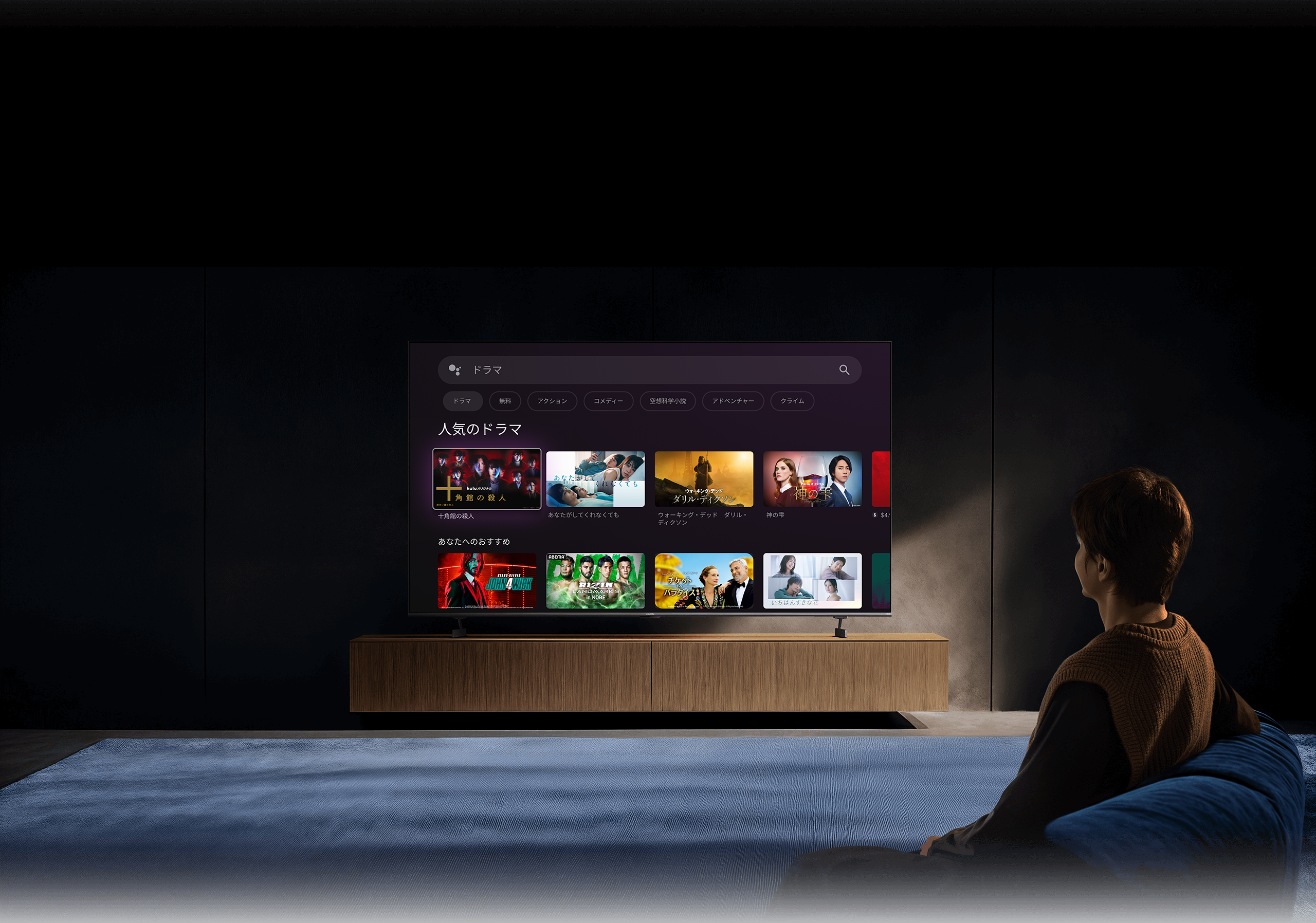 Google TV™がアプリやサブスクリプションの映画や番組などをまとめて、使いやすく整理してくれます。新しいコンテンツをお求めですか?Googleの強力な検索エンジンで、厳選されたお勧めを見ることも、10,000以上のアプリと数百種類の無料チャンネルから探すこともできます。プロファイルをパーソナライズすれば、誰でも自分専用にカスタマイズされたエクスペリエンスを手に入れられます。