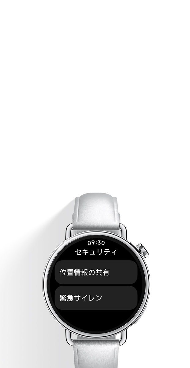 3.この機能はMi Fitnessアプリの最新バージョンで設定する必要があります。SMS送信機能および位置情報共有機能はAndroidデバイスでのみご利用になれます。詳細についてはmi.com/globalの製品ページを参照してください。