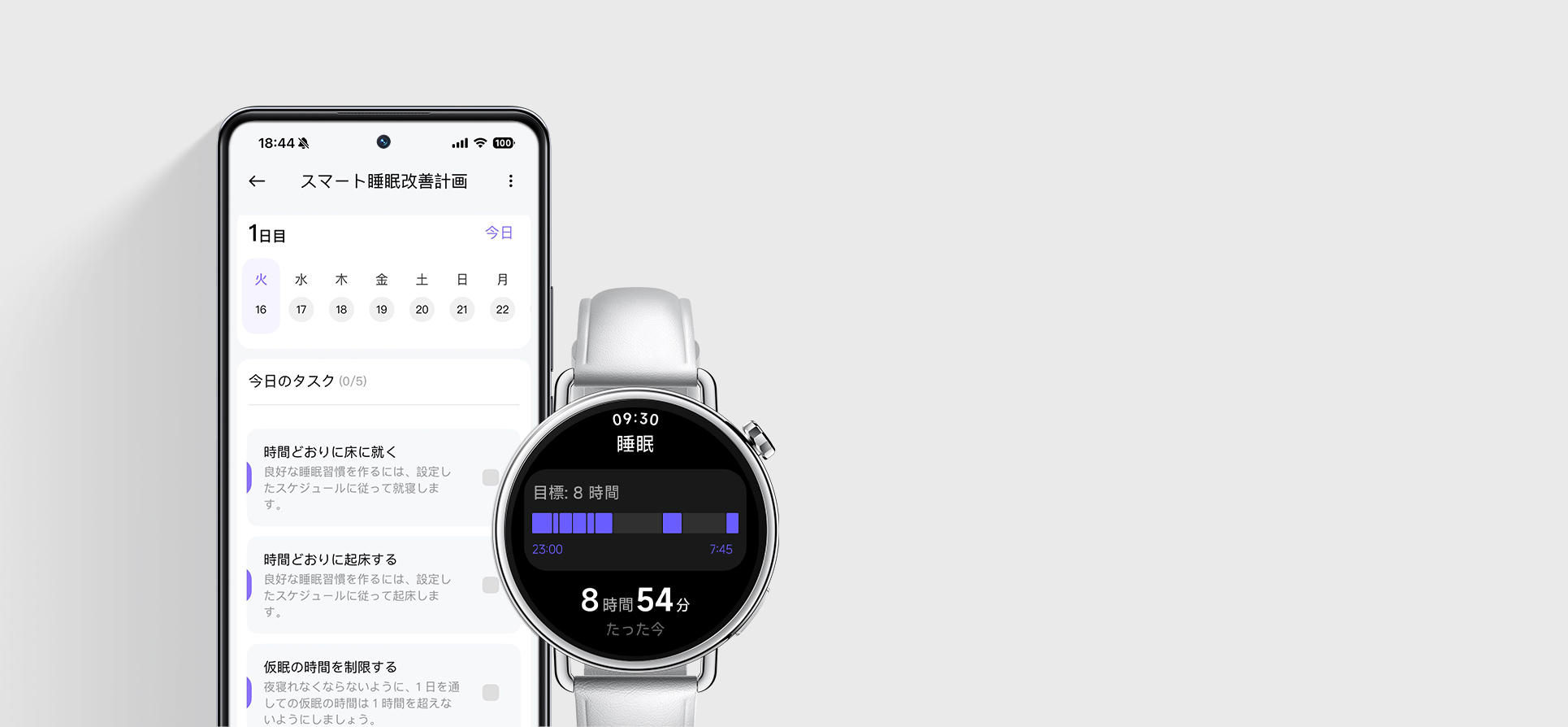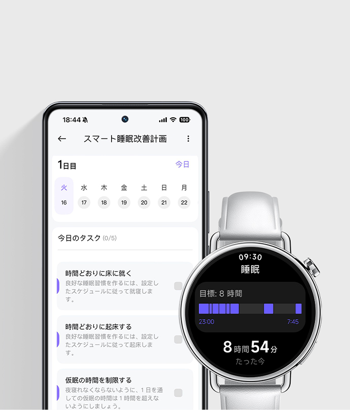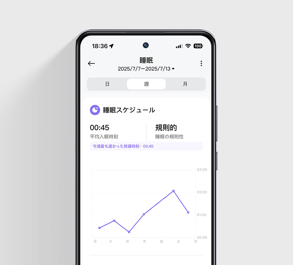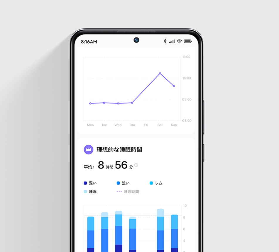 睡眠データを活用して、睡眠スケジュールの最適化、仮眠管理、昼間の活動、就寝前のリラックスなどを通して、睡眠の質を高めます。16