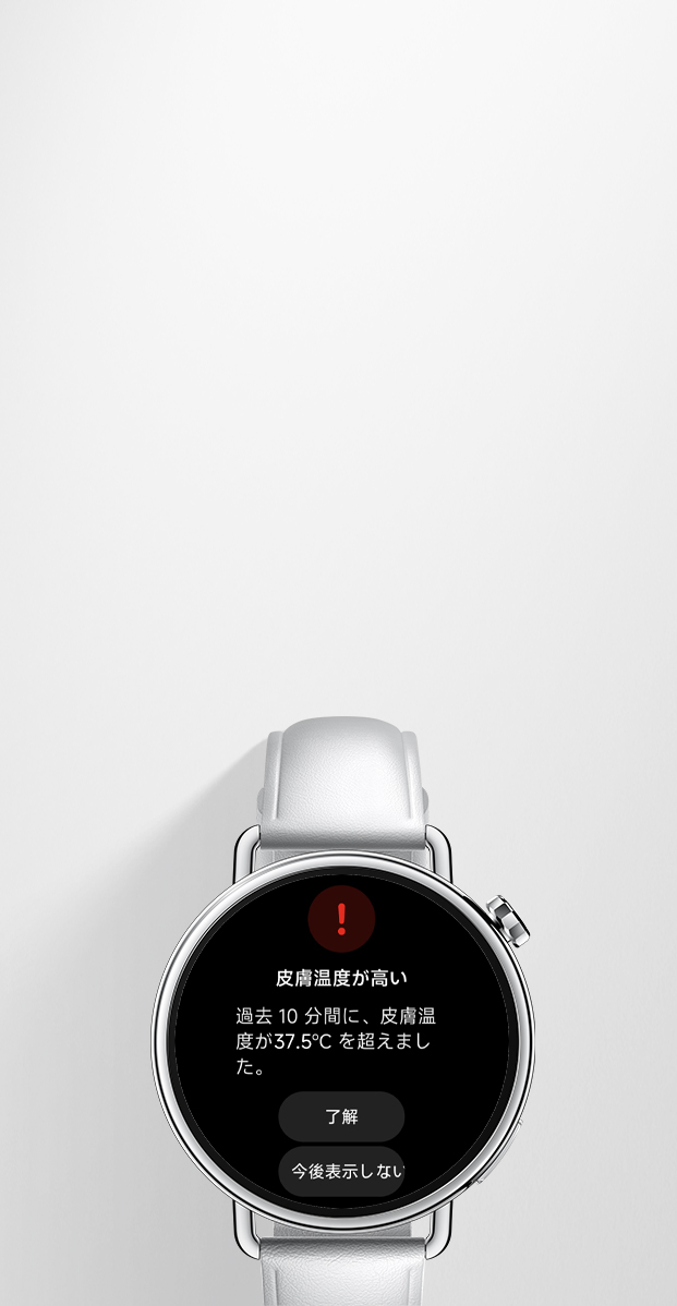 高精度の接触式温度検知機能を搭載し、0.1°C単位の小さな変化も検知可能。皮膚温度を常にモニタリングし、経時的な傾向を追跡できます。17, 18