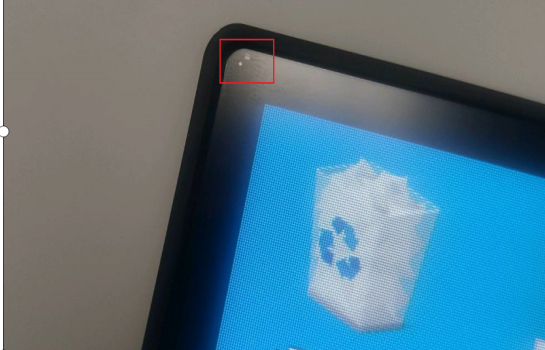 ディスプレイ画面の隅に明るい点が疑われる、ディスプレイの左上隅に白い点、ディスプレイの隅に気泡がある。