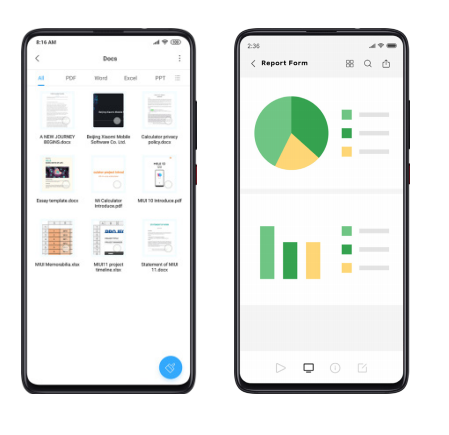MIUI 11は、顧客がさまざまな形式のドキュメントを操作できるようにする強力なカスタム機能のセットを提供します。