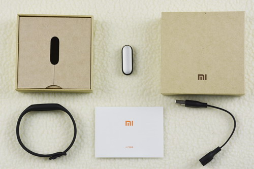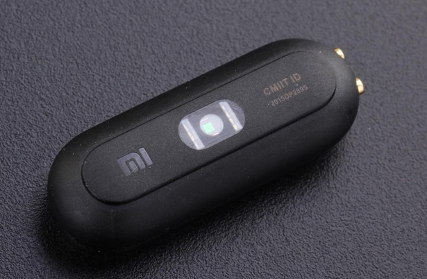2. Mi Bandの箱の写真を開梱するときにバンドが心拍数を検出すると、下図に示す緑色のライトが発せられます。
