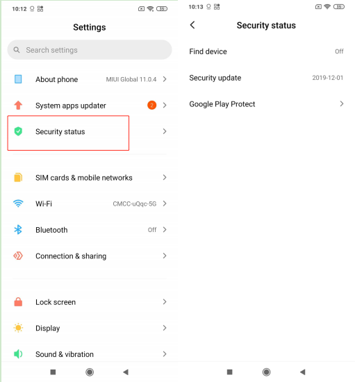 具体的な設定方法:設定>>セキュリティステータス。