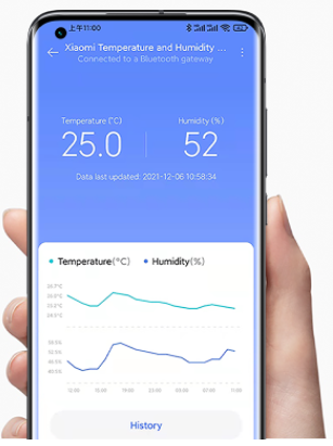 Xiaomi温度と湿度のモニター時計は、過去6か月間の温度と湿度の傾向を記録できます。Mi Home / Xiaomi HomeアプリでXiaomi温度と湿度の監視時計を検索して追加し、履歴の詳細を表示できます。