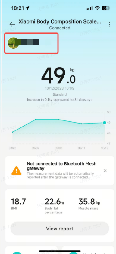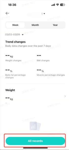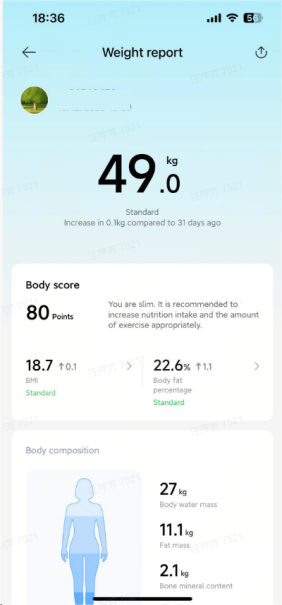 体脂肪率アイコン: 体脂肪率を表示する場合、白色は常にオンになります。 |